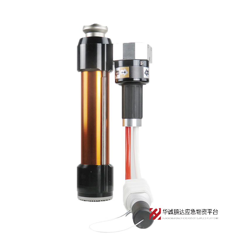 单级液压顶杆 详情内容 技术参数:额定工作压力 70MPa最大撑顶力 137.9kN闭合长度 450mm撑顶行程 300mm加长杆长度 100/175/275mm作业范围 450~1300mm 质量(不含加长杆) ≤10.8kg