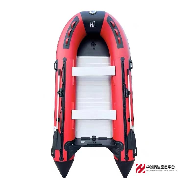 防汛橡皮舟 详情内容 1、产品材质≥0.9mmPVC夹网布、铝合金底板≥12mm。2、船体颜色:红色3、气室数≥3+14、产品尺寸>外尺寸380cmx180cm5、产品重量≤100kg6、产品载重≥890kg\7、最大载员:88、产品配置:1副豪华铝合金万向浆,2块移动铝合金座板,1个大脚泵,1套铝合金底板,船包1个,专用修补套装1套,V型船底。9、产品性能:5个以上(含5个)气室、船舰板加固、V型船底、防爆泄压阀、防渗充气阀、万向桨座。 可根据不同标准定做